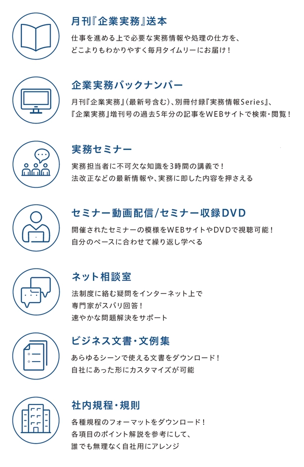 月刊『企業実務』送本と過去5年分のバックナンバー配信に加え、