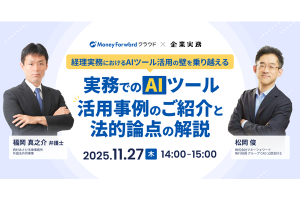 11/27開催!経理実務におけるAIツール活用の壁を乗り越える 実務でのAIツール活用事例のご紹介と法的論点の解説